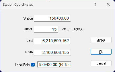 Check this box if you wish to add a label to the offset point. The default label will contain the station number and offset distance.. |