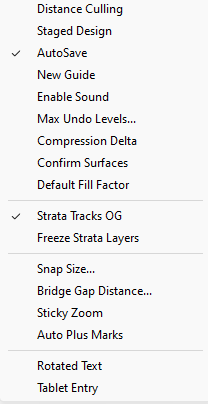 Distance_Culling Staged_Design AutoSave New_Guide Enable_Sound Strata_Tracks_OG Freeze_Strata_Layers Max_Undo_Levels Compression_Delta Confirm Surfaces Default Fill Factor Snap_Size Bridge_Gap_Distance Sticky_Zoom Auto_Plus_Marks Rotated_Text Tablet_Entry