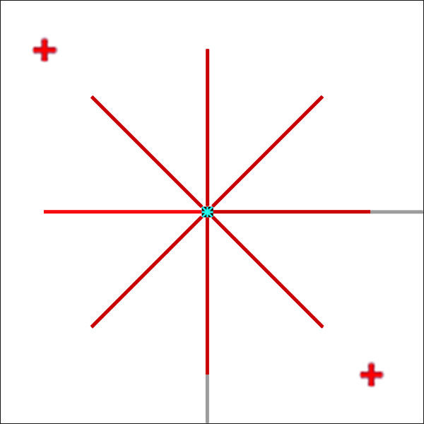 - When a point is selected on a 90 degree corner, the offset stake guides will project perpendicular to the adjacent sides, as well as a 45 degree offset from the corner. Single points are displayed at the corner of the box (5 x 5, 10x 10, etc).
