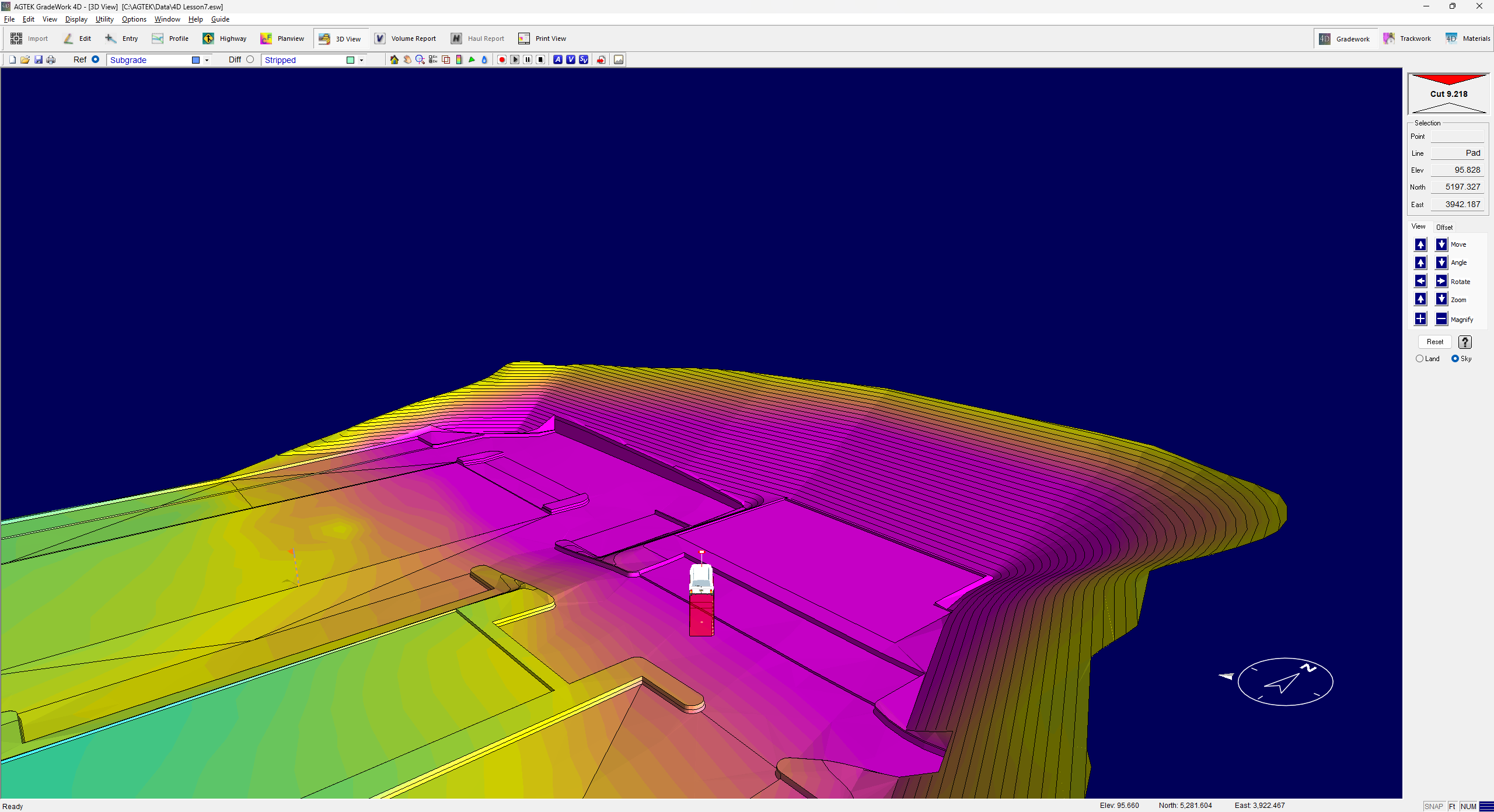 Cut-Fill mode is used to position the vehicle on the 4D surface. The Cut-Fill mode has two options. Cut-Fill and Stake.