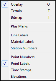 Overlay Terrain Bitmap Plus_Marks Line_Labels Material_Labels Station_Numbers Point_Numbers Point_Labels Time_Stamps Elevations