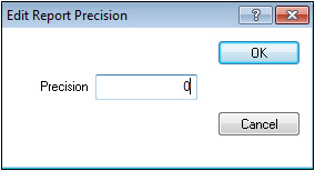 The command allows the user to edit the decimal precision of the reports. When selected the Edit Report Precision window displays.
