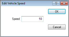 This command changes the distance in feet the vehicle travels per key-press using the Arrow keys. When selected the Edit Vehicle Speed window displays.