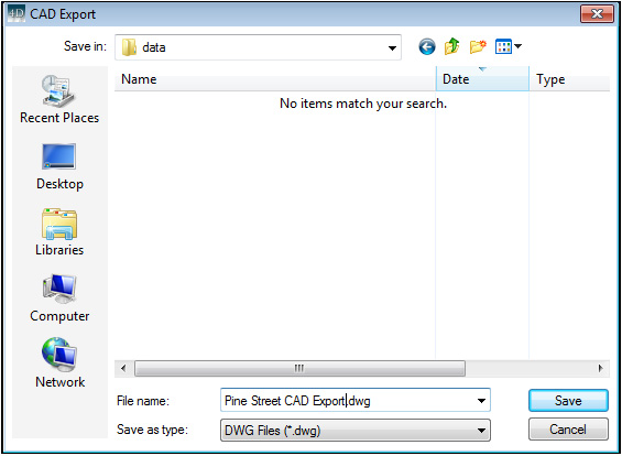 When exported, each checked option is created in the DXF/DWG as a separate layer. Descriptions of the three option types are written below.