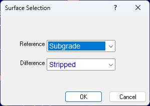 When Confirm Surfaces is checked, the program prompts the user to select the Reference and Difference surfaces when going to 3D View, Planview or Profile View. This will be useful on large projects with multiple surfaces.