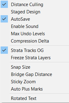 Distance_Culling Staged_Design Auto_Save Enable_Sound Strata_Tracks_OG Freeze_Strata_Layers Max_Undo_Levels Compression_Delta Snap_Size Bridge_Gap_Distance Sticky_Zoom Auto_Plus_Marks Rotated_Text Tablet_Entry