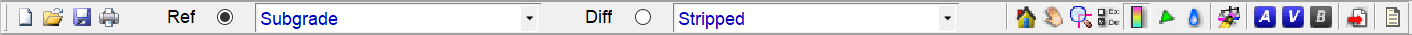 The toolbar allows you to switch to different modes, print, save files, and choose the Reference (Ref) and Difference (Dif) surfaces for comparison. Also see: Selection_Toolbar and Surfaces.