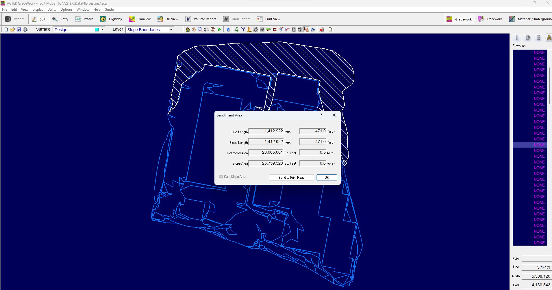 The slope boundaries may be used to calculate the surface area or volumes based on the slope range.
