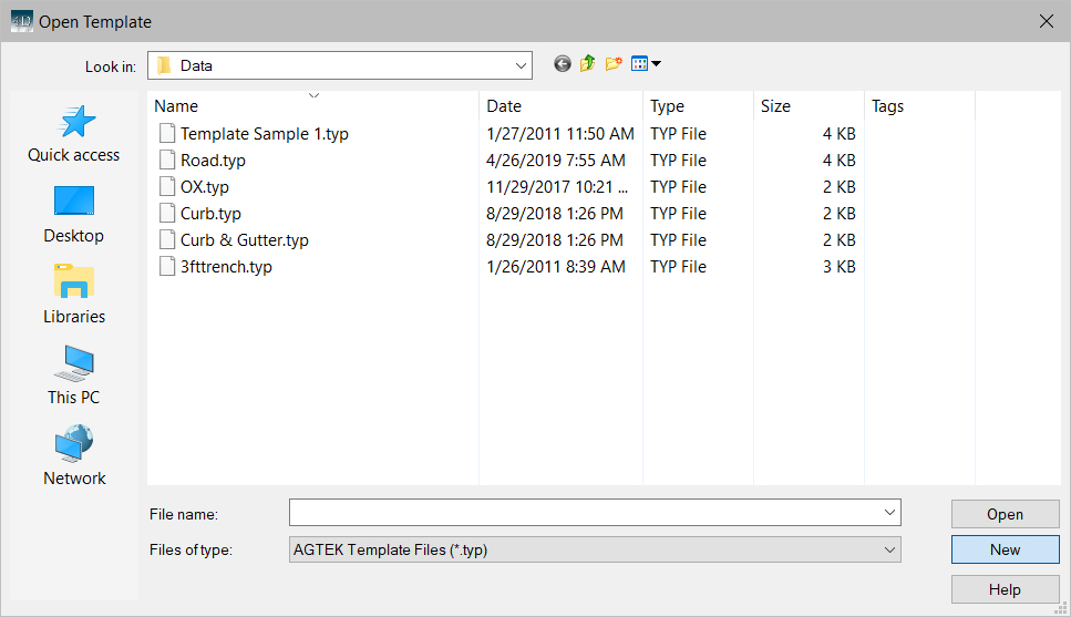 Jobs such as roads, canals, and trenches are often based on structural details or typical cross sections. Templates may be created based on a typical cross sections and applied to a chosen reference lines or multiple lines.