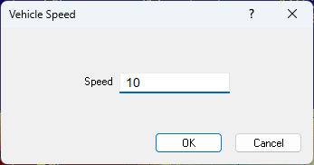This command changes the distance in feet the vehicle travels per key-press using the Arrow keys. When selected the Edit Vehicle Speed window displays.