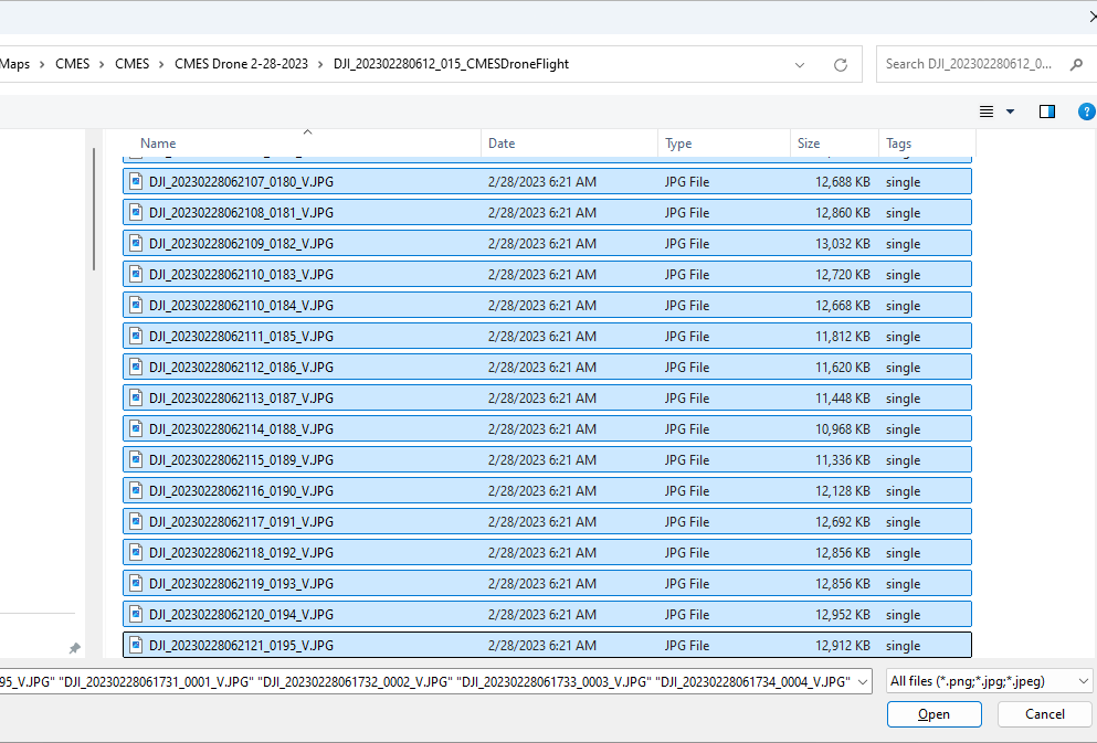 Browse to the location of the photo images. Select all the files and click Open.