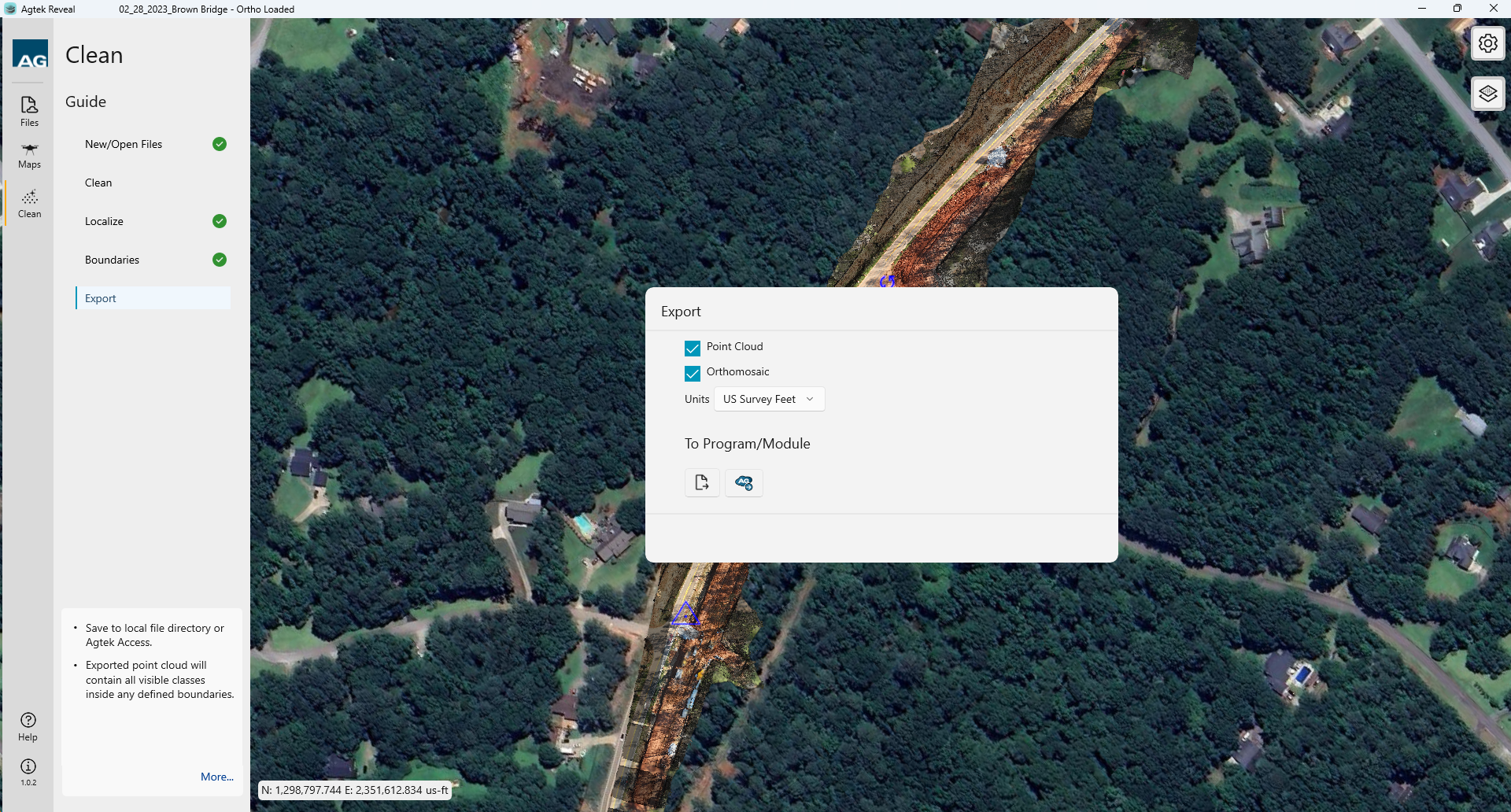 Reveal allows you to export your optimized data sets to your local machine or directly to Agtek Access. Select the data you would like to include then the location icon you wish to save into.