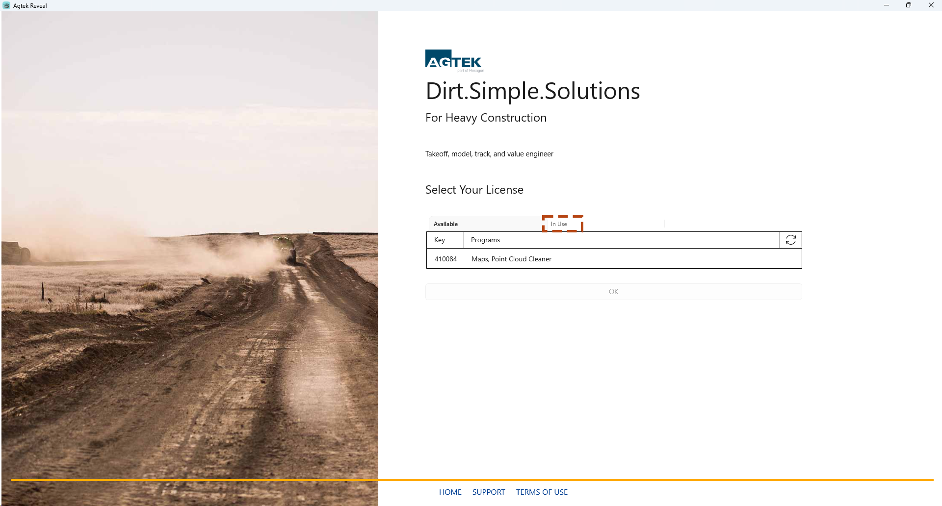 Select the Home, Support, or Terms of Use links at the bottom of the page at anytime.