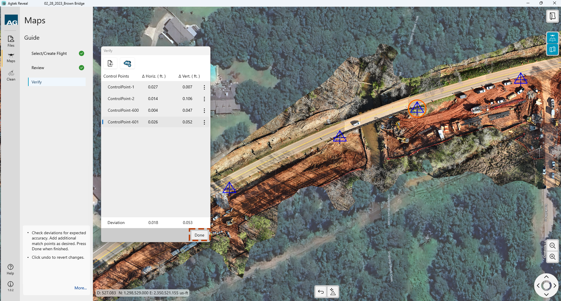 Once you have selected your control points for Verification, click Done.
