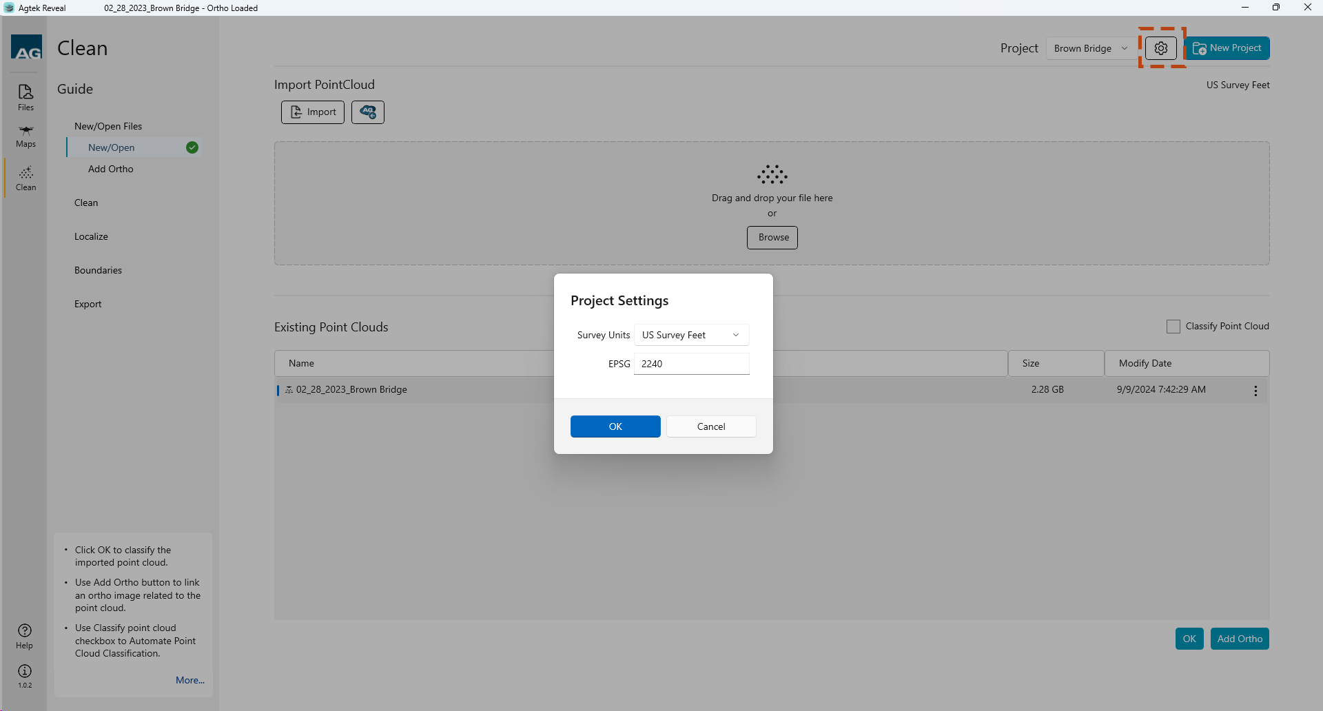 Select an Existing Point Cloud file, then click the Add Ortho button