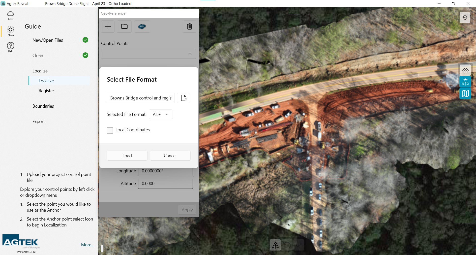 Reveal accepts control point files from many photogrammetry engines as well as Agtek adf files. Select the format you would like to use.