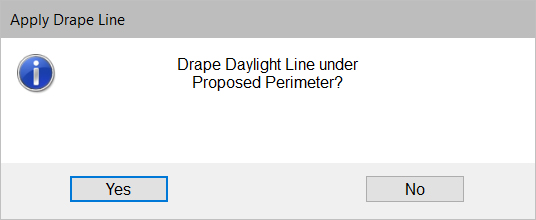 A Drape Line ties the edges of the perimeters daylight. When closing a Perimeter in any surface, you will have the option to apply a drape line. For most situations the Perimeter Proposed, and holes within the perimeter, should be entered with a Drape Line. If the perimeter does not tie into the existing ground, you would not apply a drape line.