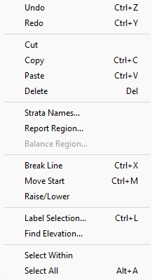 Undo Redo Cut Copy Paste Delete Strata_Names Report_Region Balance_Region Break_Line Move Start Raise/Lower Label_Selection Find Elevation Select Within Select_All
