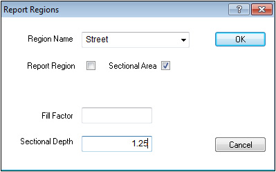 A Sectional Area can be entered in two ways: by selecting the Design surface and Sectional Areas layer or by using the Report Regions command.
