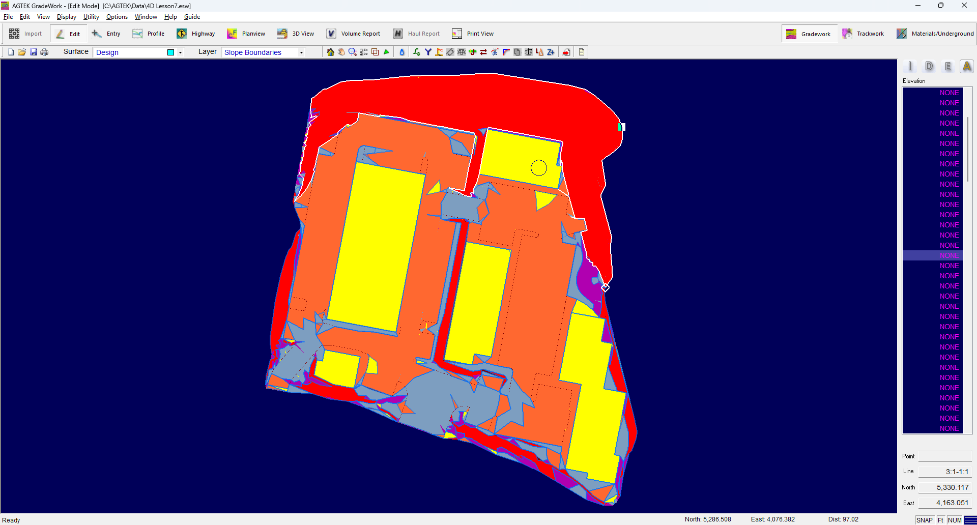 The slope boundaries may be used to calculate the surface area or volumes based on the slope range.