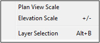The View Menu us used to adjust the display of visible data on the screen. The planview and elevation scales can be adjusted and the background layers selected. Below are descriptions of the commands located under the View Menu.