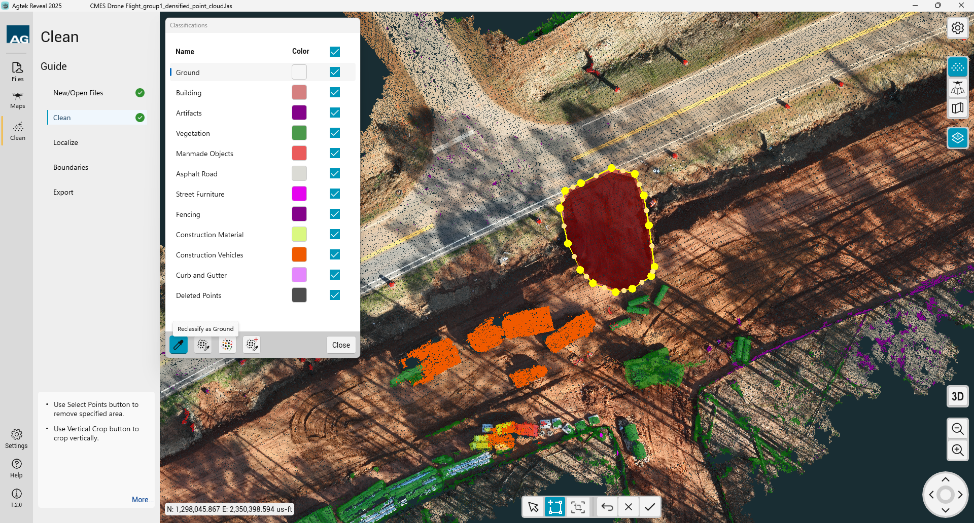 The deleted points will be restored to the new classification. Uncheck Deleted Points when complete.