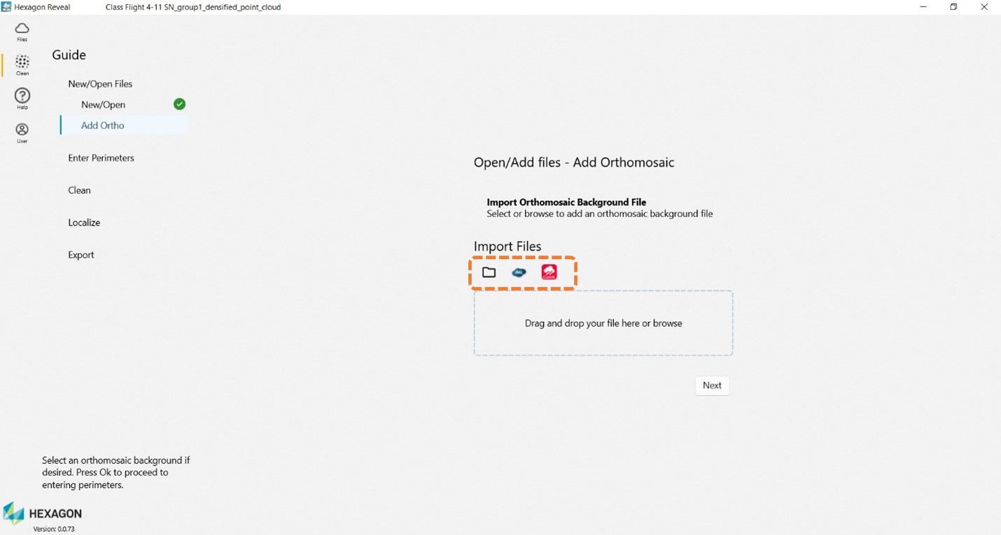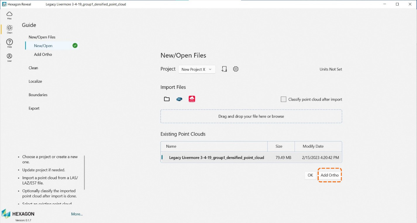 Select an Existing Point Cloud file, then click the Add Ortho button