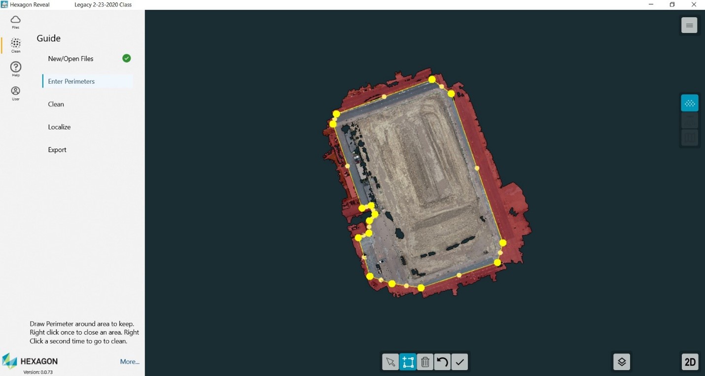All highlighted points outside the defined Perimeter, shown in red will be placed into a Deleted Points class. Those points will be accessible to you and can be reclassified if needed.
