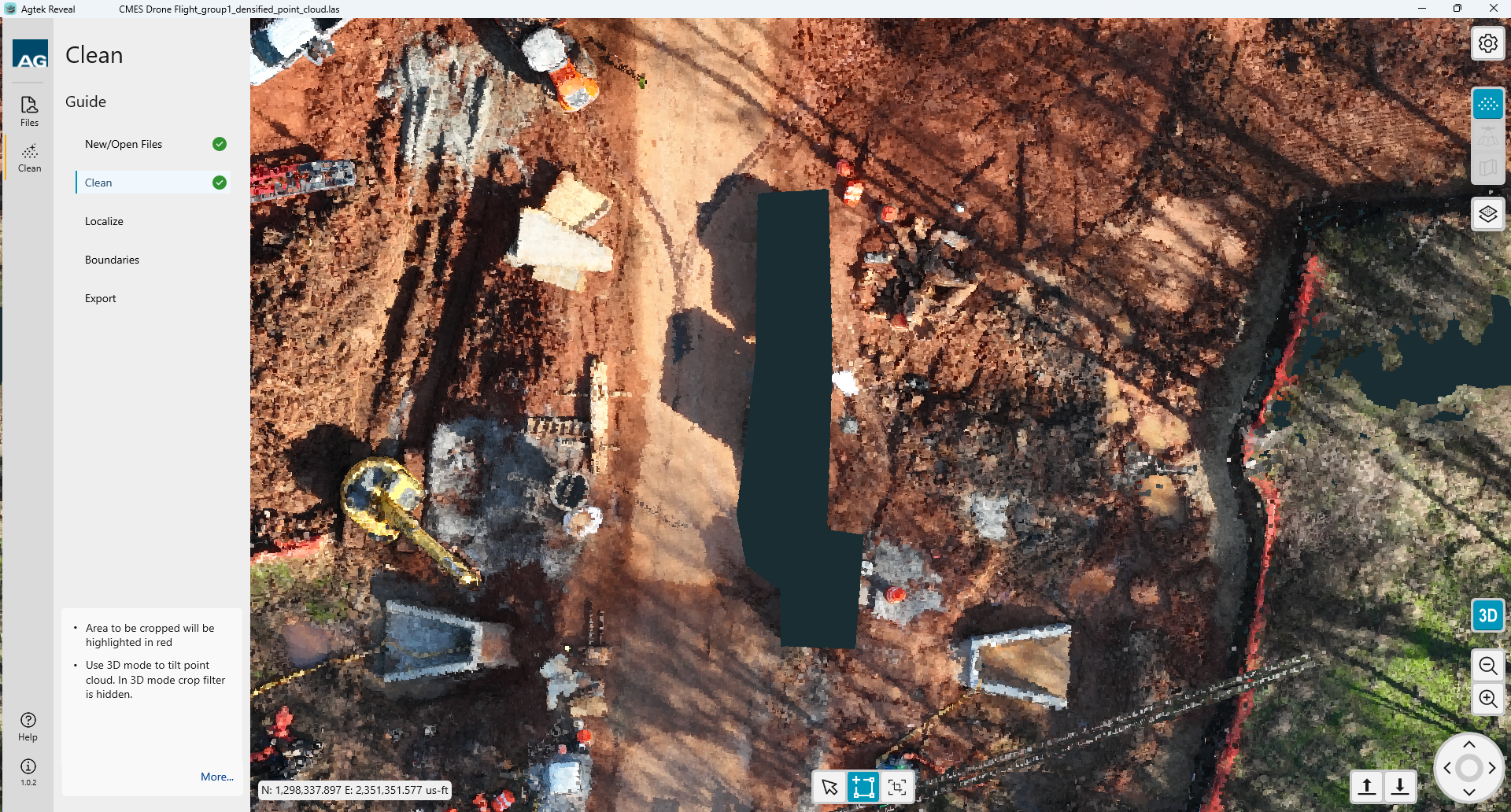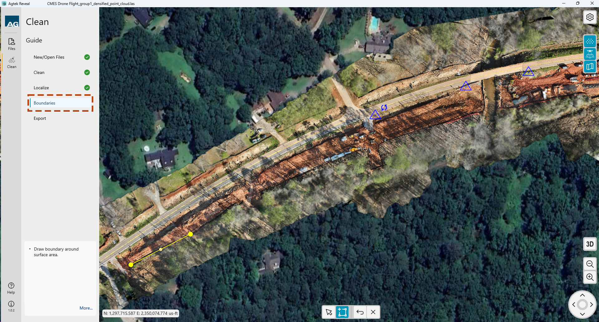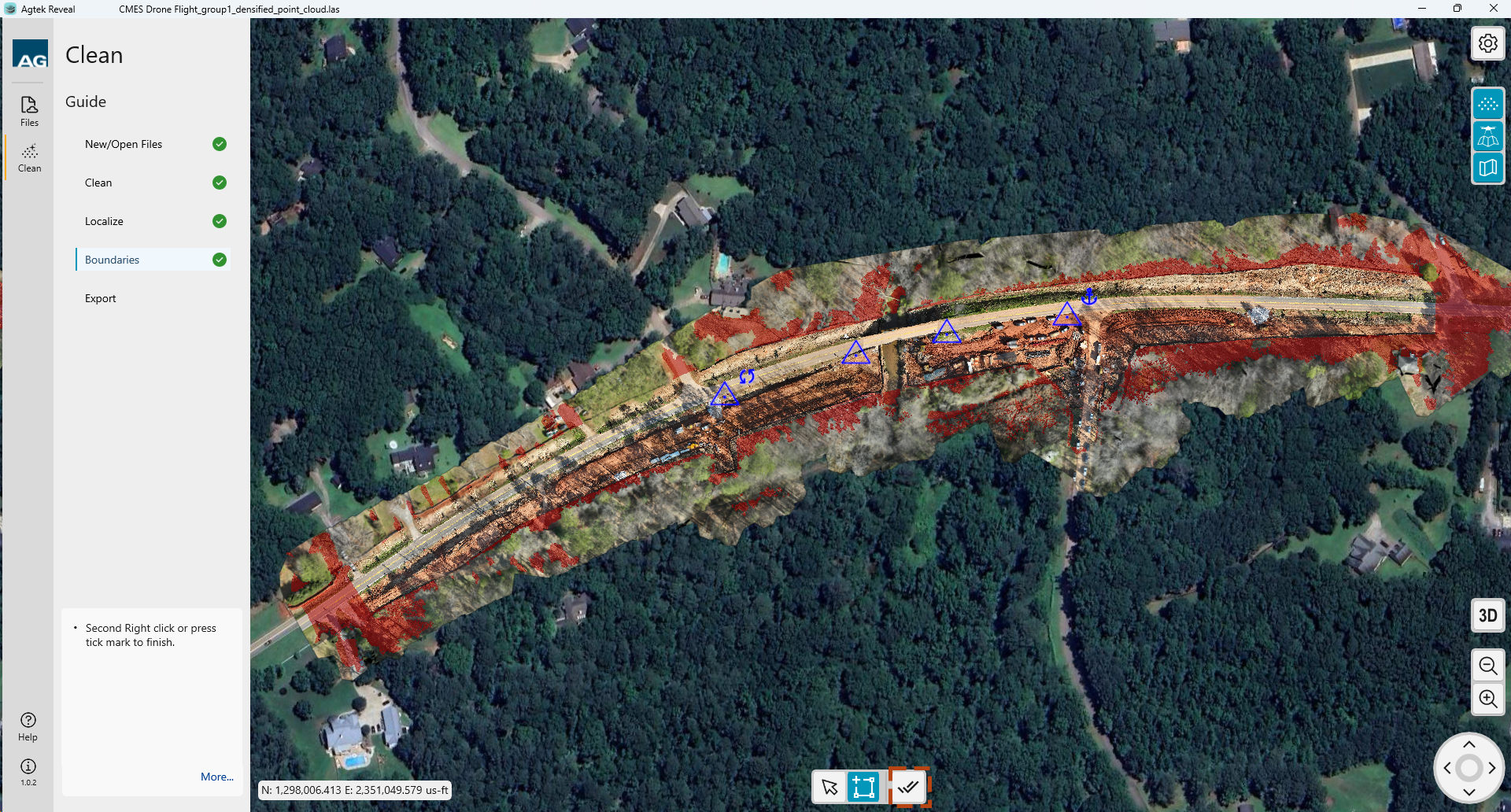 shown in your point cloud or ortho. Left click to select. The point