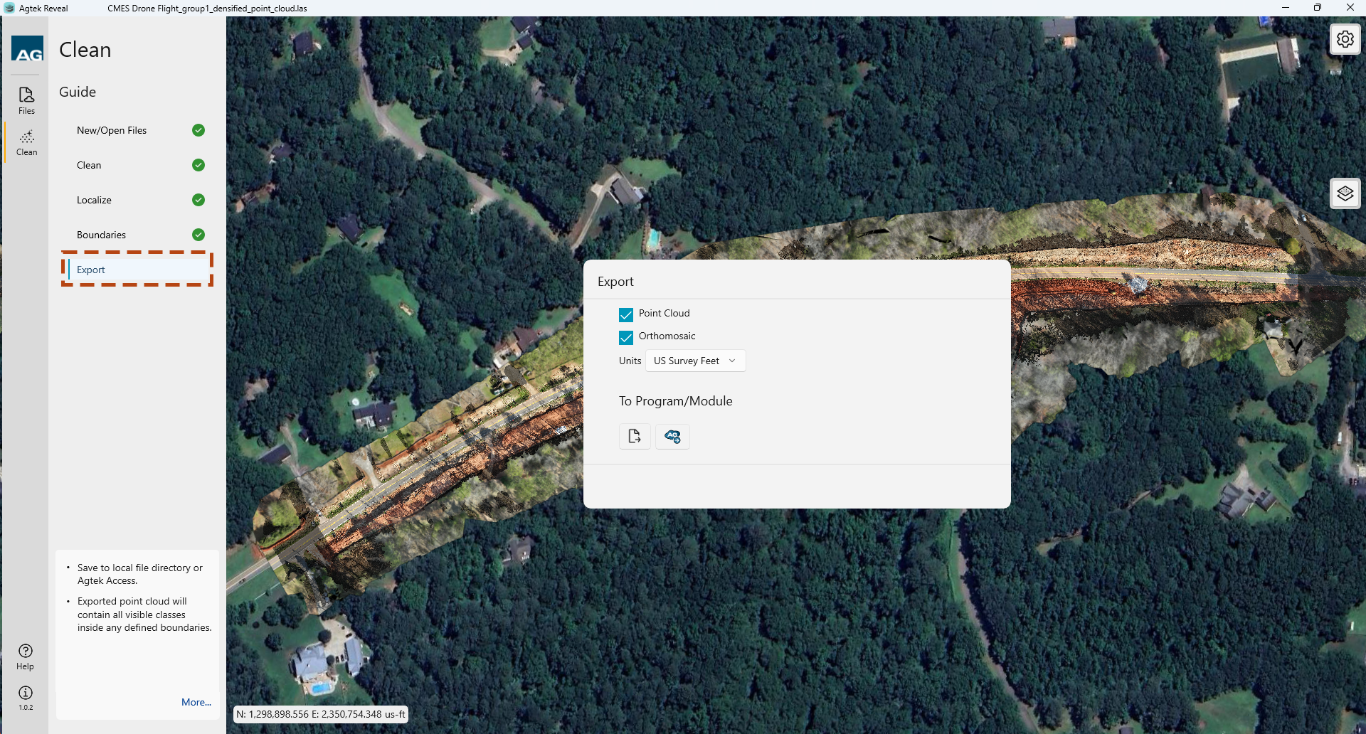 Select an Existing Point Cloud file, then click the Add Ortho button
