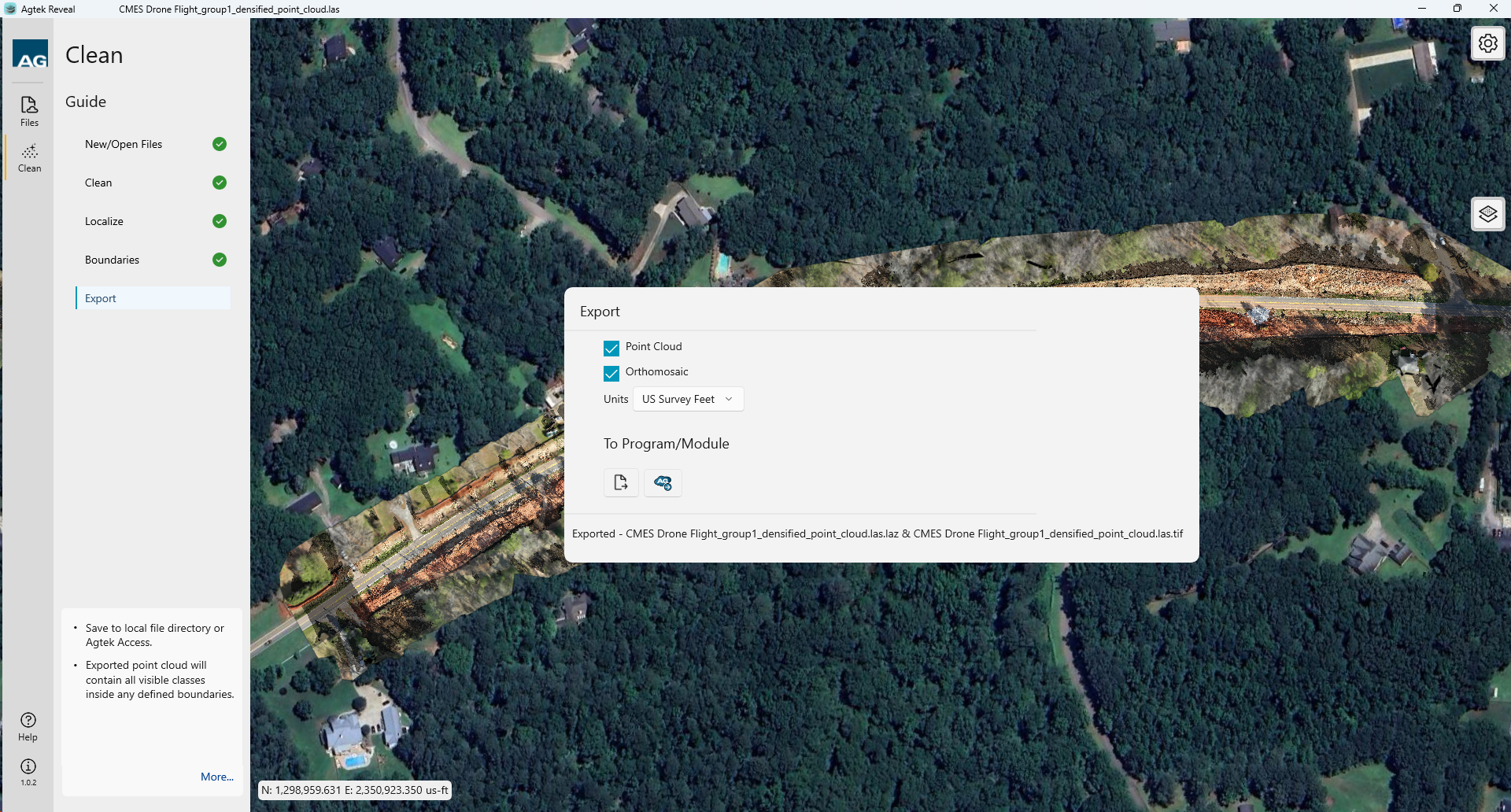 Reveal allows you to export your optimized data sets to your local machine or directly to Agtek Access. Select the data you would like to include then the location icon you wish to save into.