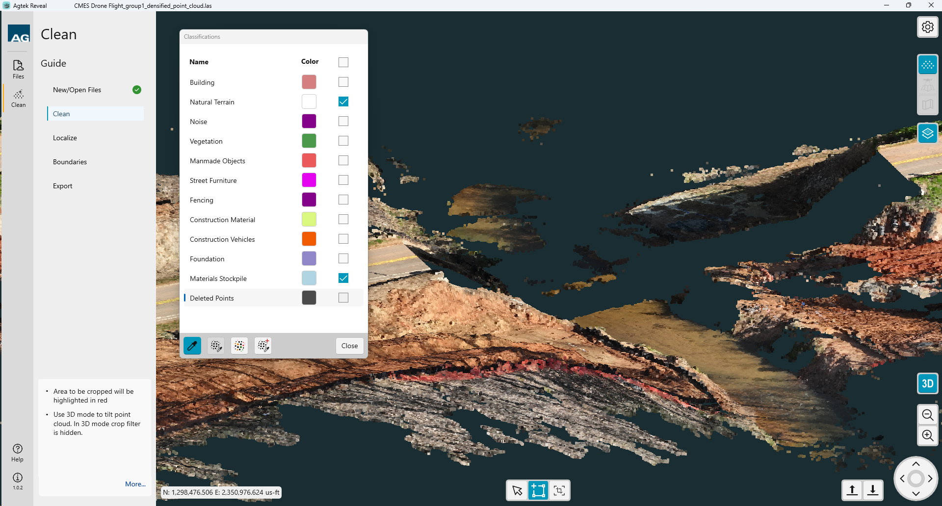 You may also select data for classification by using an elevation range. Click the Vertical Crop button at the bottom of the screen.