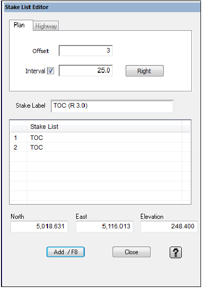 add the desired points to the Stake List. The Stake List Editor