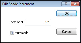 This command is used to adjust the Cut/Fill Shade Increment. When selected, the following window displays.