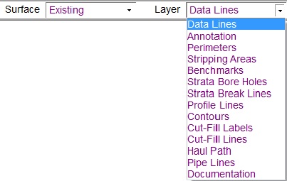 The Data Lines layer contains the lines, points and labels relevant to the existing ground. Data contained within this layer is used to generate the 3D surface. |