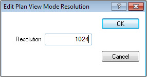 Enter one of the following values in the Resolution window. 64, 128, 256, 512 or 1024. Upon installation, the default resolution is 1024. You may want to consider lowering the resolution if: you find that the planview is taking too long to regenerate, your printer can not handle the higher resolution, or the computer hangs when switching to Planview Mode.
