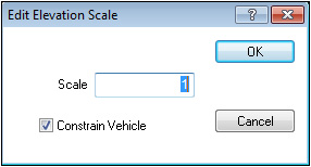 Change the value in the Text Box to change the Elevation Scale. A value between 0.001 and 20 can be entered. Select the Constrain Vehicle checkbox to allow the vehicle to remain the same scale.