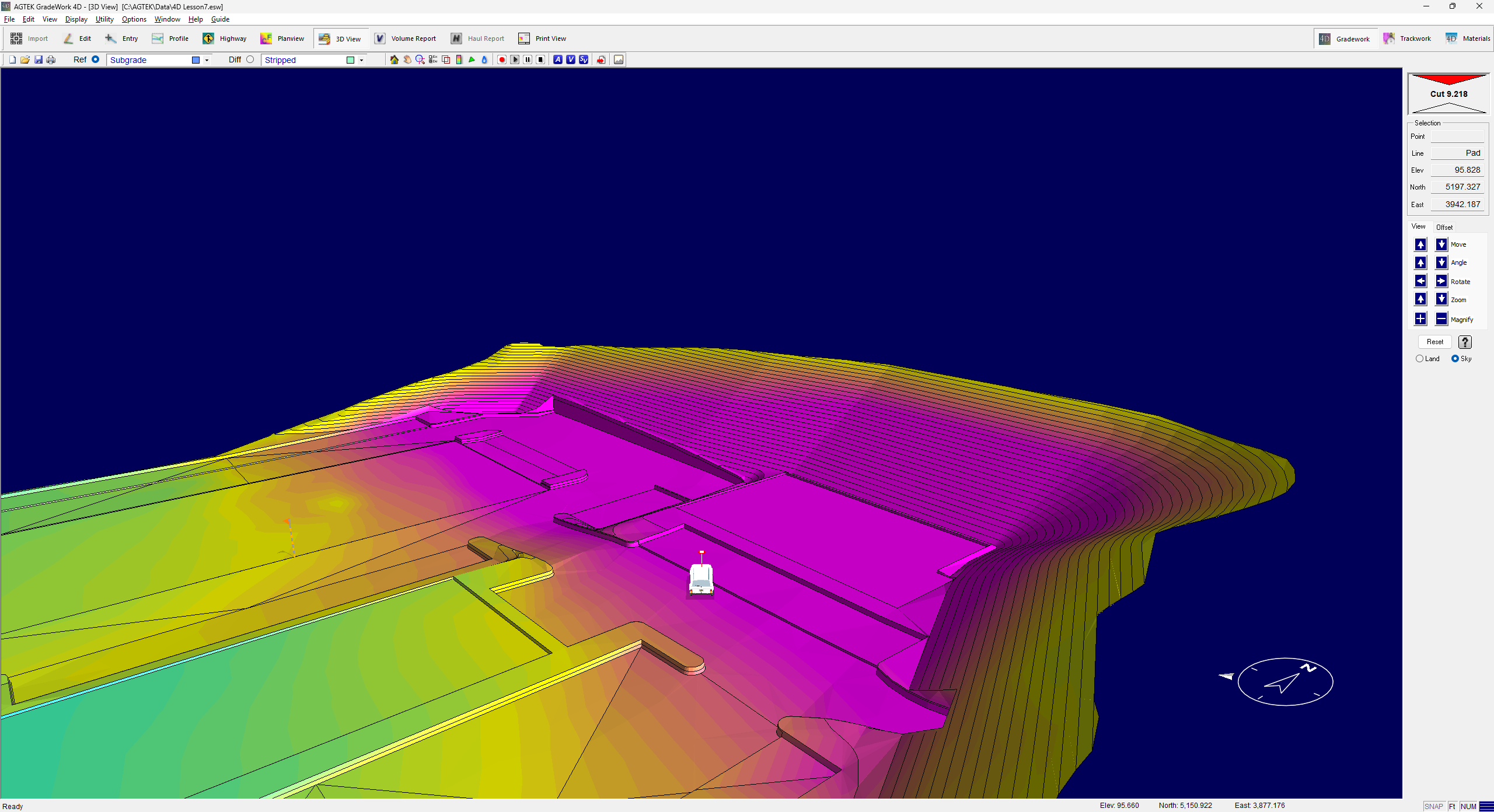 When Cut-Fill is selected, the vehicle will be positioned on the Difference surface, so when driving on the site, the vehicle will move up or down based on the depth of cut or fill.