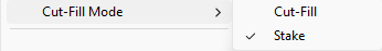 Cut-Fill mode is used to position the vehicle on the 4D surface. The Cut-Fill mode has two options. Cut-Fill and Stake.