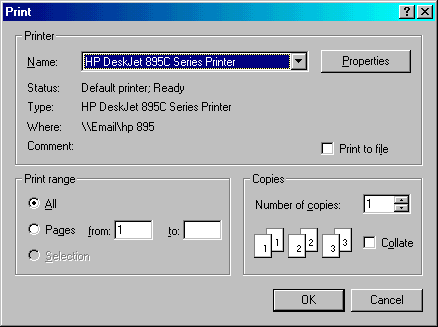 This feature prints the data that is currently displayed on the screen. When selected, the Print window displays allowing you to choose the printer, change the printer properties and print settings.