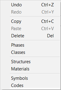 Undo Redo Copy Paste Delete Phases Classes Structures Materials Symbols Codes