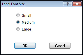 This window displays when editing the Label Font Size on the Print Page. The fonts sizes will vary depending on the selected printer. There are three options.