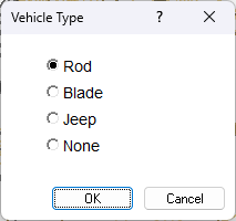 The Vehicle Type option allows the user to select the vehicle to display in 3D view. You may choose a Rod, Blade, Jeep or None.